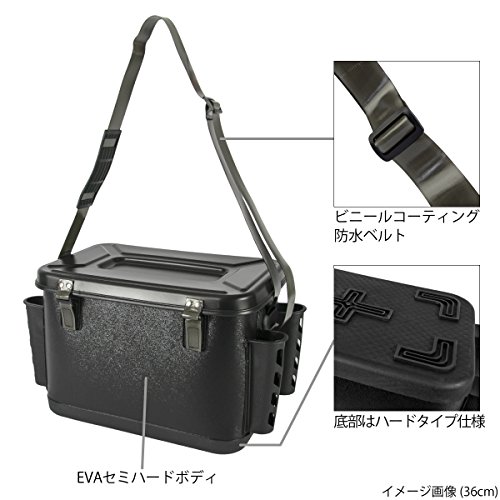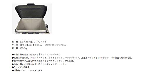 がまかつのバッカンです。 価格は10,000円程度(2022年5月24日現在) サイズは40cmです。 蓋の裏側にポケットがついており、小物の収納にも便利です。Dリングがついていますのでナイフなどをカラビナなどで取り付けると、なくす心配もなく便利に利用することができます。