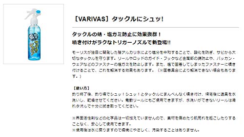 バリバスのタックルにシュッ!です。 価格は1,800円程度(2022年5月24日現在) 塩分中和スプレーです。タックルの他バッカンの金属系パーツにも使用できます。塩噛みで開けにくくなるので、水洗いまで時間がかかってしまう場合はこちらがおすすめです。