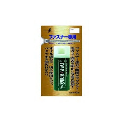 ボナンザのファス・メンテ 50です。 価格は1,400円程度(2022年5月24日現在) こちらも塩分中和系スプレーです。 防錆効果もあるので海水を浴びるバッカンに定期的に使用するとファスナーが長持ちします。