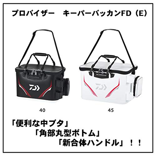 ダイワのプロバイザー キーパーバッカンFDです。 価格は9,300円から13,000円程度(2022年5月24日) サイズは40cm・45cmです。 ロッドスタンドとエアポンプケースの付いたバッカンです。トーナメントでの活かしバッカンとして活躍する他、流行のヤエンをはじめとする生きエサ釣り全般で活躍します。