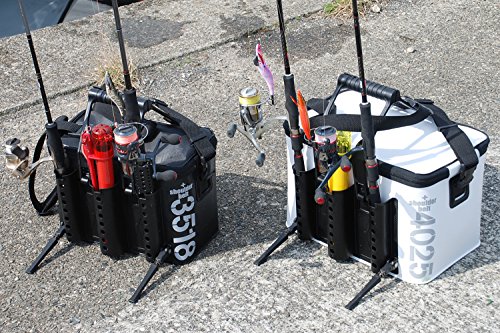 こちらの製品は運搬性能を重視したタックル収納機能の高い製品です。 最大4本までのロッドを釣り場で立て掛けておく事ができます。拡張性が高く使い方の自由度が高いバッカンならではの製品です。