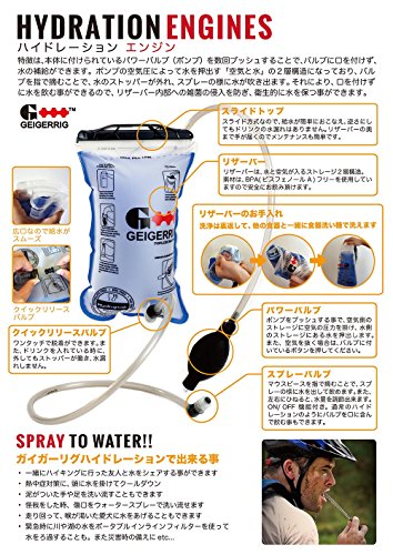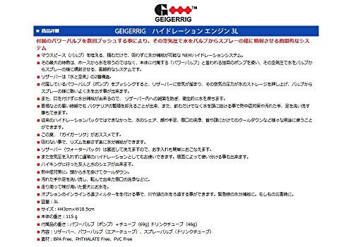 バックパックにの中に入れて直接チューブで水を飲むハイドレーションです。さほど大きなデザインでは無いので、バックの中でも場所を取る事無く利用する事が出来ます。 シンプルなデザインなので、手入れもしやすく人気の商品となっております。