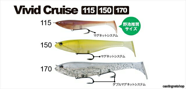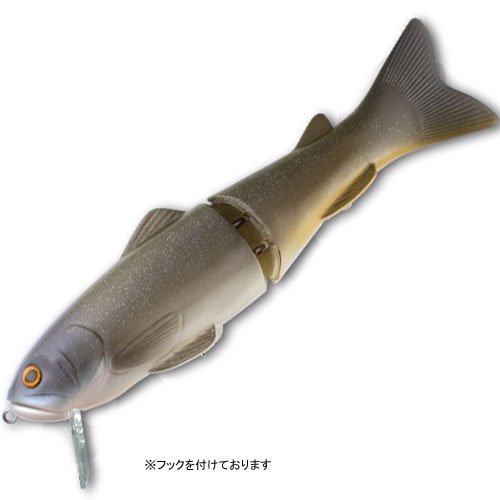 スペック 【全 長 】 150mm 【ウェイト】 78g 【タイプ 】 スイムベイト 【価 格 】 2592円 特 徴 ①胸鰭がわずかに動く ②超リアルギル系ソフトベイト ③マグネットで針を固定 一 言 サイズが大きい分、こちらも アピール力が強くなります。 ソフトベイトという特性を生かし 胸鰭が少し動くことでビッグバス をいやらしく誘います。