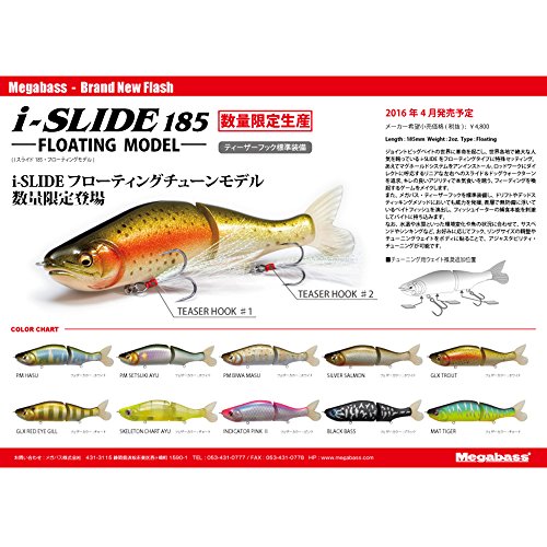 スペック 【全 長 】 185.0㎜ 【ウェイト】 2.0oz(57g) 【タイプ 】 スローシンキング 【定 価 】 4800円 特 徴 ①マグホールド ②アシンメトリック ウェイトポジション ③360°ターン 一 言 このサイズのI-SLIDEは、 フローティングタイプも あります。 タックルインプレッション では、★×3.5