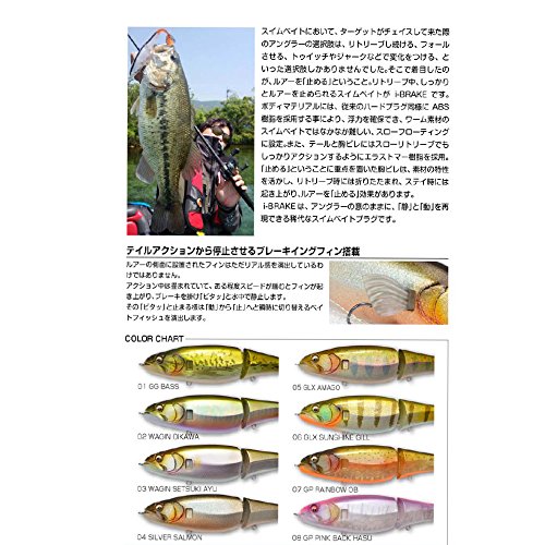 スペック 【全 長 】 165mm 【ウェイト】 70g 【タイプ 】 フローティング 【価 格 】 4104円 特 徴 ①スローリトリーブではゆらゆら ②ファーストリトリーブでは、 ハイピッチアクション ③構造色のようなきれいな色 ④背びれ、テールはソフト樹脂 一 言 とてもきれいな色をしたギル系 ビッグベイト。 ギル系でも、スローリトリーブで きれいにアクションしてくれる ところがGOOD!! タックルインプレッションでの 評価も★×5!!