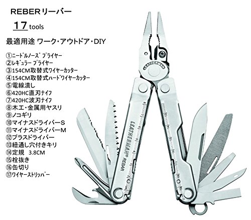 【製品概要】レブは人気モデルのウイングマンの機能性を継承したラインナップで、フルサイズサプライヤーを装備するモデルの中で最軽量のモデルです。レブはレザーマンの推奨するエントリーモデルで日常生活やアウトドアでの使用を目的に製造され、お求めやすい価格で広いユーザーに向けリリースした、コストパフォーマンスの高いモデルです。 【製品規格】「サイズ全長:9.7㎝(収納時)」「ナイフ刃渡り:6.6㎝」「重量:168g」「製品機能数:14」「価格:4,927円」※価格は平成30年1月12日現在、上記amazon URL記載のもの