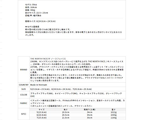 高い防水、透湿、保温性によって足元を暖かく快適に保ちます。人気のヌプシブーティーシリーズのウォータープルーフレディースモデルです。洋服のコーディネートだけでなく、内側の生地のカラーが違うので、脱いでもおしゃれに見えます。サイズはUS5〜9(22.0cm〜26.0cm)です。