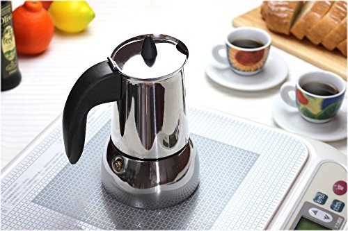 清潔感のあるステンレス製ですがちょっとお値段が…と言う方にオススメです。オールステンレス製でお求めやすい価格のこちらのエスプレッソメーカーは、2カップサイズで5,000円以下となっております。すっきりとした無駄のないシルエットでステンレスの光沢が美しく光ます。お手入れも簡単で器具の内側、外側ともに汚れが付きにくく、汚れもサッと落とせて楽ちんです。オールステンレス製のエスプレッソメーカーは長く衛生的に使え、お手入れも楽チン!エスプレッソメーカー初心者におすすめのマキネッタです。コーヒー豆は深煎りで極細挽きをご利用ください。