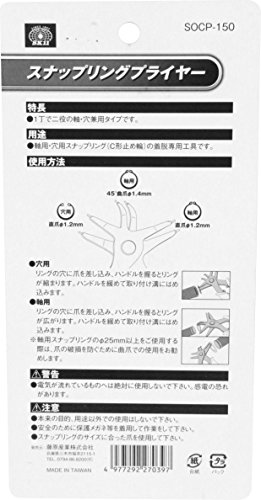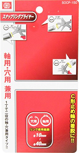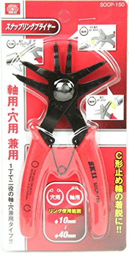 3つ目に紹介するスナップリングプライヤーはSK11のサークリップ・スナップリングプライヤーです。このスナップリングプライヤーの最大の特徴は1つのプライヤーに軸用・穴用ストレートタイプ、軸用45度オフセットタイプの3パターンが備わっている点です。複雑な形状をしているので取り扱いには要注意ですが、1つで3パターン賄えるので非常に便利です。軸径は10-40mmまで対応しているので、大体のスナップリングを着脱できるでしょう。価格も1,574円とリーズナブルですので、お試しに購入して使ってみるのも良さそうです。