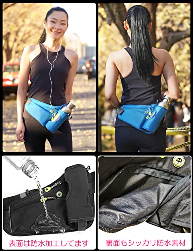 表地は撥水加工、裏地は防水加工で作られており、急な悪天候による雨にも対応することができますので便利です。大容量の収納スペースが確保されていて小物入れとしての機能も充実しています。ボトルも抜き取りやすく、戻しやすいデザインとなっており、機能性も高いのでランニングにぴったりのポーチと言えるでしょう。