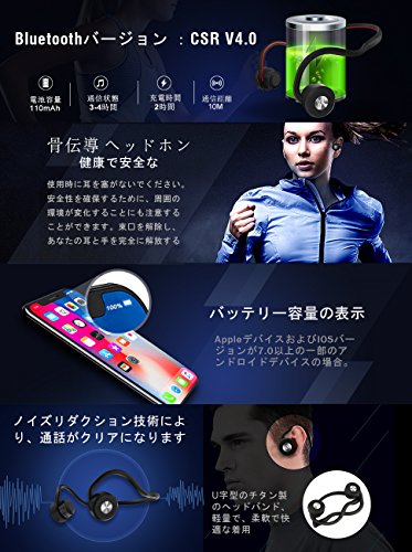 NATUCE| Bluetooth4.0 スポーツ ヘッドセット高音質 ノイズキャンセ 軽量骨伝導