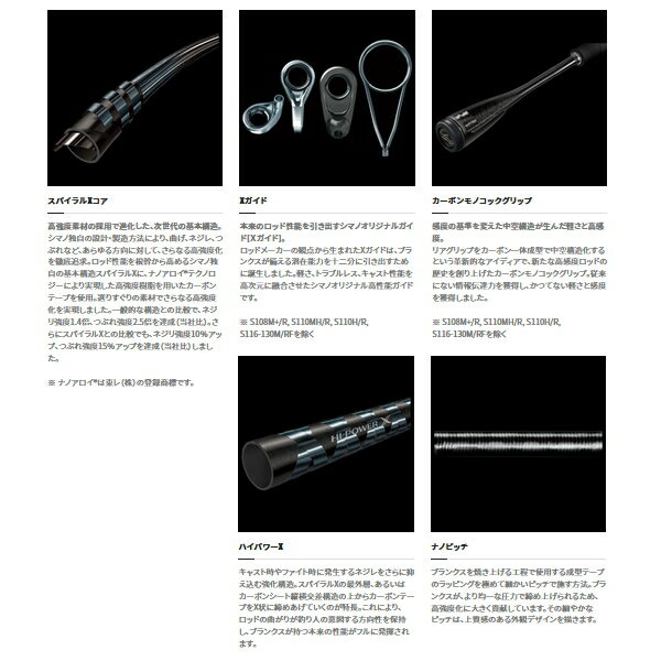こちらのシーバスロッドには、ネジレとつぶれに強いスパイラルXを採用しています。また、フードとシートの間の段差をなくすことにより、握りやすさを向上させているのがポイント。