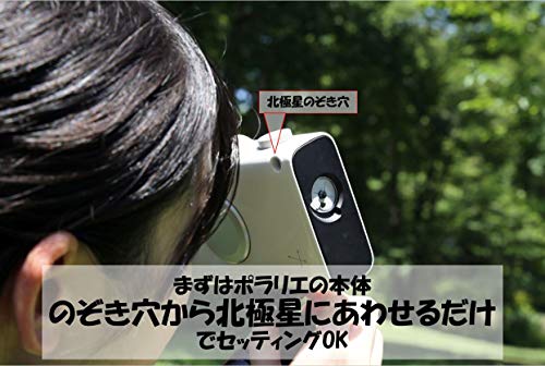 極軸合わせをおこないます。ポラリエに内蔵されているコンパスで北を確認し、北極性の位置を確認します。ポラリエの、のぞき穴から北極星が見えたら極軸合わせは完了です。北極性の場所がわからない方は、ビクセンから出ている別売アクセサリーのポーラメーターが便利です。