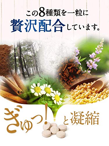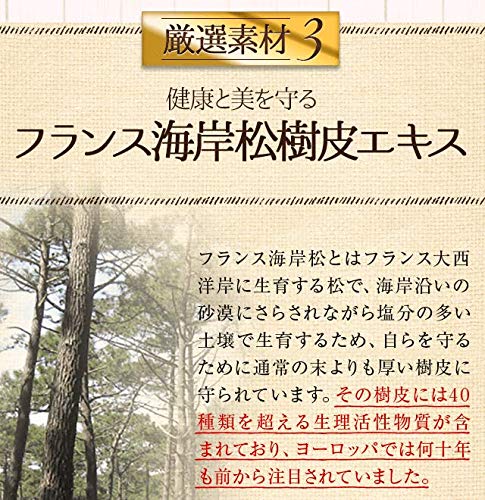 原材料:フィーバーフュー末、フランス海岸松樹皮エキス、酸化マグネシウム、ビタミンB2、大豆抽出物、イソフラボン含有)など 内容量:90粒