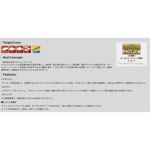 ライトジギングスピニングロッドのスタンダードモデルです。10,000円を切るお求めやすい価格も魅力的で、不意に大物がかかっても問題なく、釣り上げることが可能です。中断性カーボンを採用した粘りがあり扱いやすい素材で、ガイドは信頼できるFUJI製。ジグをしっかりとアクションさせることができ、初心者からベテランまで対応でき、ショアから船までこなせる扱いやすいロッドです。