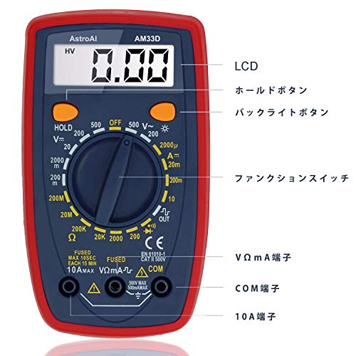 AstroAI テスター デジタルマルチメーター 電気 電圧 電流 抵抗 ダイオード 測定 導通 テスター 小型 バックライトLCD 自動車 日本語説明書(改良版) 一年保証付き