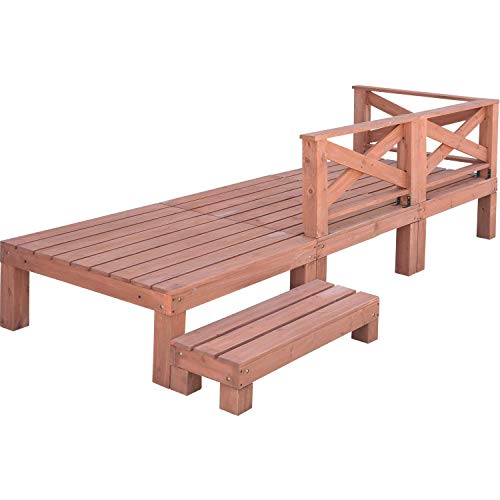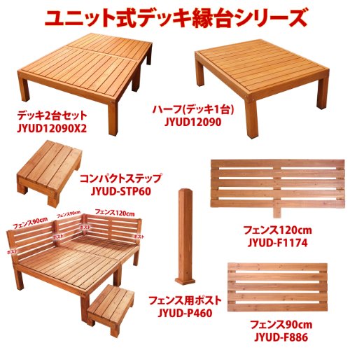 おすすめウッドデッキキットその4は天然木製 ユニット式デッキ縁台 2台セットです。デッキ2台セットで販売されているウッドデッキキットになります。サイズは120cm×90cm×40cmと比較的コンパクトな大きさに仕上がっているので、少ないスペースでの作り方を考えている方にうってつけのウッドデッキです。