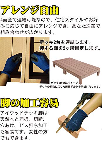 簡単組み立て・設置ができるのおすすめ理由の1つです。作り方はすでに組み立てられた状態の枠に脚を4本ボルトで締めて、その上にデッキ板を置くだけ。DIY初心者やDIYを趣味としない方でも、だれでも簡単にできる作り方となっています。紹介しているものは2台セットタイプですが単体売りもあります。おすすめのウッドデッキキットです。
