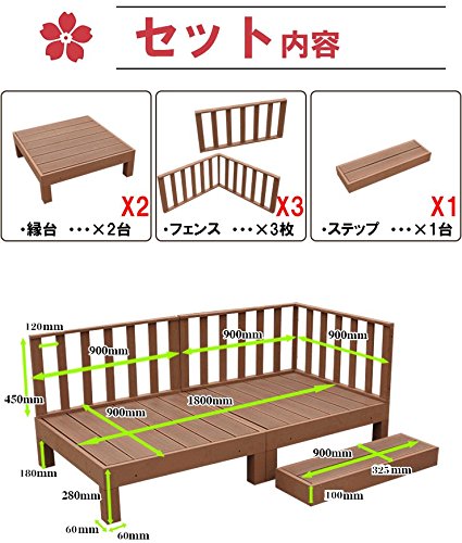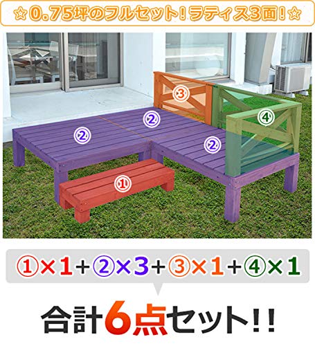 おすすめウッドデッキキットその7は人工木ウッドデッキ 6点セットです。材質が人工木のウッドデッキキットになります。ラティスとコーナーラティスが付いているので、安全性やデザイン性も高いです。ステップも付属するのでウッドデッキ初購入の初心者の方でも、作り方にこだわることなく簡単に設置できておすすめです。