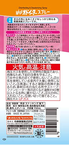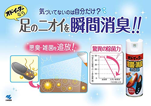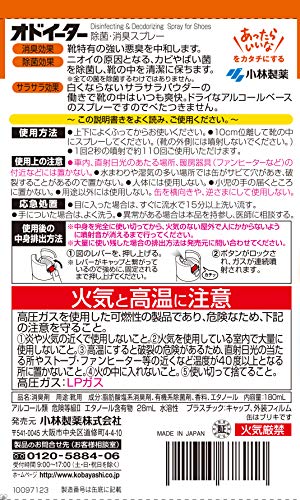 出典: https://www.amazon.co.jp/%E5%B0%8F%E6%9E%97%E8%A3%BD%E8%96%AC-160600-%E3%82%AA%E3%83%89%E3%82%A4%E3%83%BC%E3%82%BF%E3%83%BC-%E9%99%A4%E8%8F%8C%E3%83%BB%E6%B6%88%E8%87%AD%E3%82%B9%E3%83%97%E3%83%AC%E3%83%BC-180ml/dp/B000ARWTVG/ref=sr_1_7?s=hpc&ie=UTF8&qid=1533458518&sr=1-7&keywords=%E9%9D%B4+%E6%B6%88%E8%87%AD%E3%82%B9%E3%83%97%E3%83%AC%E3%83%BC&refinements=p_n_feature_nine_browse-bin%3A2351775051サラサラとした手触りのパウダーの働きにより、シューズ内部に爽やかさを与えて快適な履き心地にしてくれます。使い方もとてもシンプルで、上下によくふって、10cm程の距離から靴内部にスプレーするだけです。