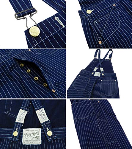 一見ウォバッシュストライプのようですが、抜き染めではなく、織りによって打ち出された美しいストライプ柄。人気アメカジファッションブランドの桃太郎ジーンズのオーバーオールは、ワークスタイルに似合う服をお探しの方におすすめです。
