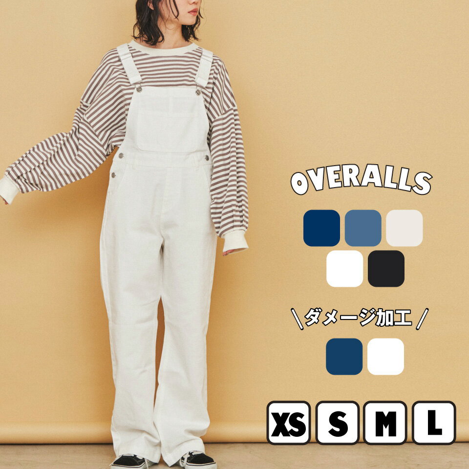 若い世代から人気のWEGOからは、ホワイトカラーのオーバーオールが人気です。肩ひもを片方外すことによって、中に来ているカラーシャツを目立たせることができておすすめ。