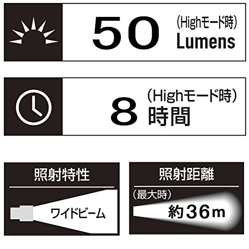 ライトの明るさ:50ルーメン(Highモード)