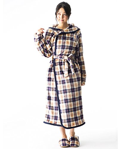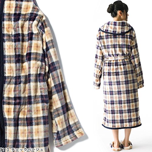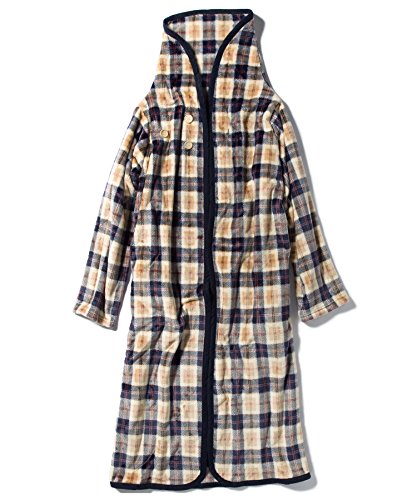 nukku~ヌック 着る毛布 ルームシューズ付き ガウンタイプ ルームウェア ポケット ボタン 腰ひも付き ブランケット 男女兼用【フリーサイズ-11チェックベージュ】