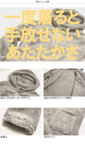 ロング丈のパーカーデザインを採用しているフード付きの着る毛布になります。表地、裏地にはボアフリース生地を使用していて、肌触りも心地良く、寒さからしっかりと体を守ってくれます。