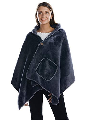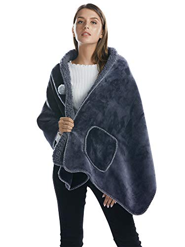 (バルゴース)BARGOOS 着る毛布 ひざ掛け ブランケット 肩掛け ルームウェア 厚手 大判 暖かい 保温 ショール 静電気防止処理 ポケット付き 洗濯でき 寒さ対策 冷房対策 レディース メンズ グレー M