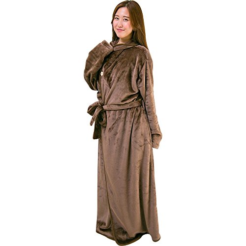 アイリスプラザ 着る毛布 fondan ルームウェア フランネルマイクロファイバー とろけるような肌触り 静電気防止 洗える Lサイズ 170cm丈 ブラウン