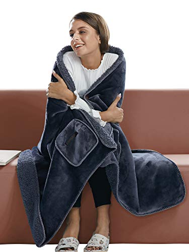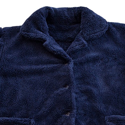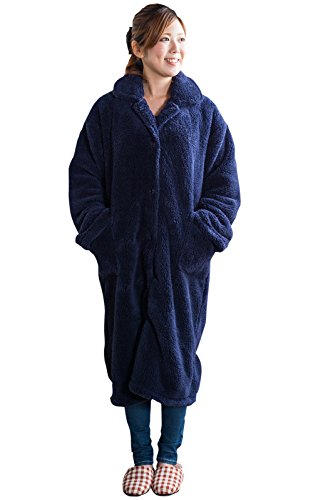 【マイクロファイバー着る毛布 最高の肌触りが身体を包み込む】 空気を包んで暖かいシープボア生地 ボタンやポケット付きで使いやすい 静電気防止加工 洗える (Mサイズ ネイビー色)