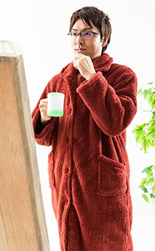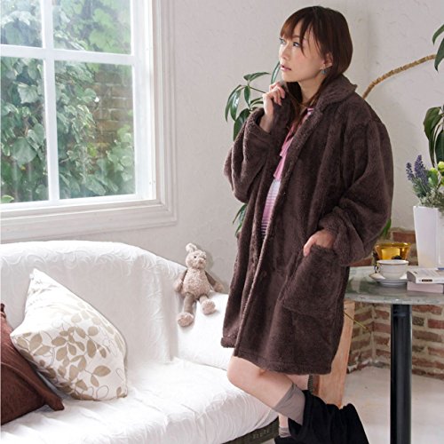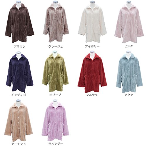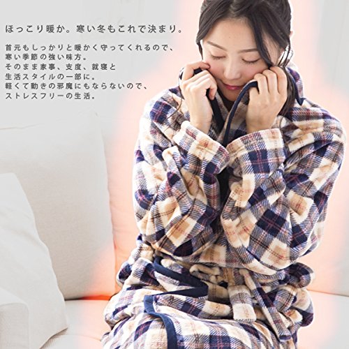 天然成分由来の椿オイルを生地へと練りこんでいますので、保湿成分により肌への感触がよく、肌への潤い効果も得る事ができます。着ている最中にパチパチとした不快な静電気が発生しないよう、静電気防止加工も施されています。襟元ボタンにより首元をしっかりと閉じて冷気を侵入させないようにもできます。がウンベルトにより丈の長さを調整して着る事もできますので、歩行もしやすくなり、着ながら快適に家事を行えます。