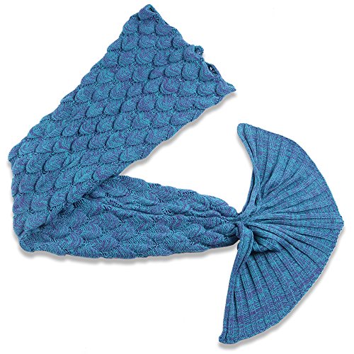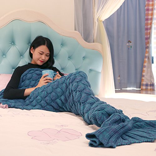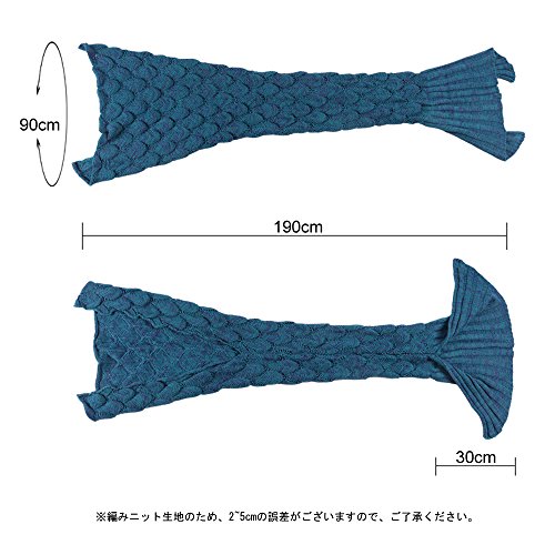 YOHOKO マーメイドブランケット ひざ掛け 着る毛布 インテリア 防寒 冷房対策 寝具 人魚毛布 男女兼用 190x90cm (ブルー)