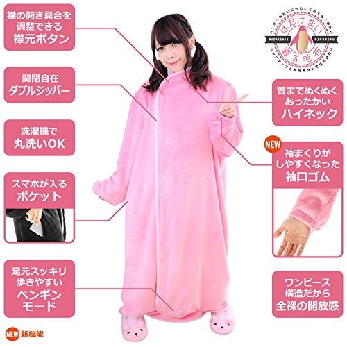 素材にはふんわりとした質感が心地良いアクリル繊維を採用していて、優しいパステルカラーが魅力的で、寒さを感じた場合に膝掛けとして活用したり、布団と一緒に併用して体を冷えから守ったりと様々な使い方が出来る着る毛布です。またアウトドアシーンなどでも寝袋としても活用する事ができますので重宝します。