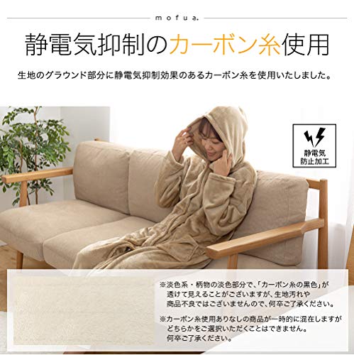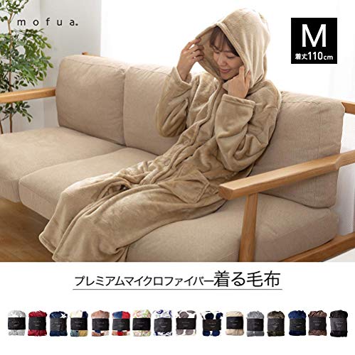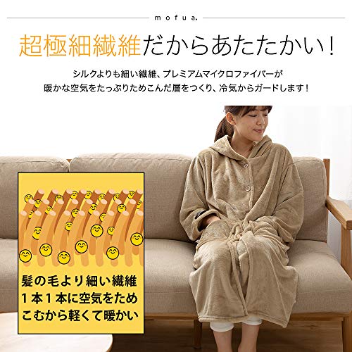 mofua モフア プレミアム マイクロファイバー 着る 毛布 フード付(ルームウェア) 着丈110cm ベージュ 48476416