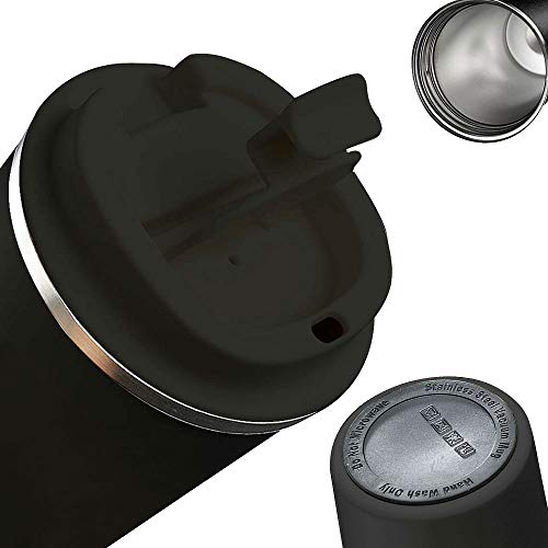 衛生的な開閉ができるフタ、片手で簡単に操作可能です。飲まない時はフタを閉めて、ホコリが入らないようにできます。内部は平らでなめらかに加工なので、コーヒーの色や茶渋と匂いが残りにくいのがポイント。