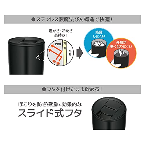 洗いやすさにこだわった、スライド式フタ付きのコーヒータンブラーです。全パーツ食洗機対応なので、お手入れが簡単。ステンレス製魔法びん構造を採用しており、温かさと冷たさが長持ちします。