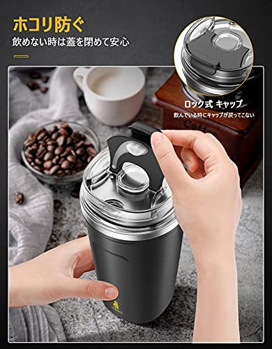 それとこのコーヒータンブラーは外側が結露しにくい上に、熱くなりにくいです。他のメーカーの物と比較すると持ち歩きしやすく、仕事場や学校でも役立てられます。フタは透明なので、後コーヒーがどれぐらいの量残っているかがすぐに確認もできるようにもなっています。