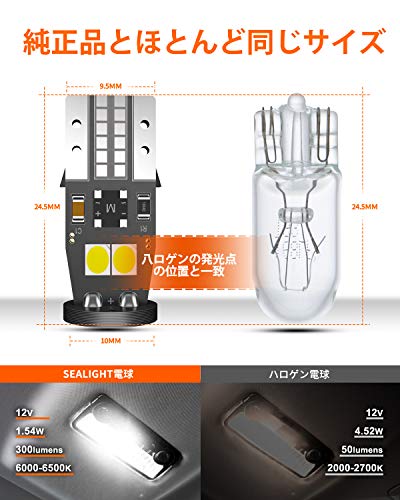 SEALIGHT T10は、超高輝度と省エネを売りにしたledルームランプです。色温度は6000ケルビン以上で色合いはホワイト、省エネ能力は市販品のハロゲンに比べ約3分の1まで落とした高性能商品になります。