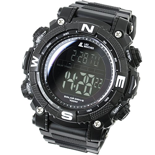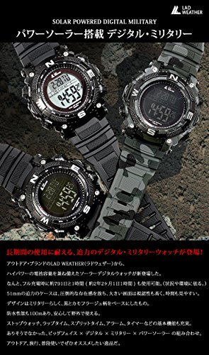 [ラドウェザー]ソーラー腕時計 メンズ時計 ミリタリーウォッチ 100m防水 サバゲ― ストップウォッチ (ブラック(反転液晶))