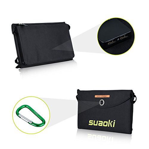 suaoki ソーラーチャージャー 25W 防災 停電対策 アウトドア 軽量 急速充電 防災グッズ ソーラーパネル 折りたたみ式 防水 カラビナ付き ソーラー充電器 モバイル充電 USB スマホ タブレット 太陽光発電 スマホ充電器 防災グッズ