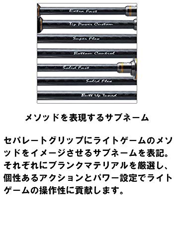チューブラーの感度、操作性を使って、ボトムの釣りを満喫できる一本です。ジグ単、ライトな直リグやテキサス、チニングボトムルアーといったルアーに対応するモデルで、メインとなる釣りはライトロックフィッシュとチニング。L+と強めに設定されたパワーで、その他のロックフィッシュも楽しく狙っていけそうです。あくまでライトに、使用感や釣り味も楽しみながら遊びたい方におすすめです!