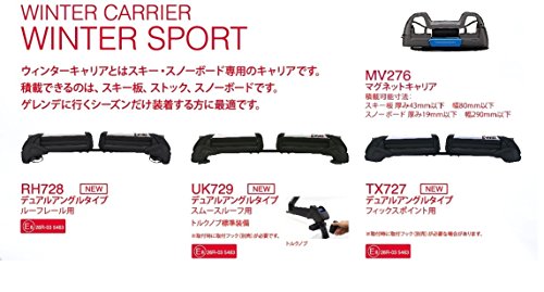 取り付け条件などは、販売店・説明書に明示してあります。キャリア自体は片開きタイプで、積載の目安はスキー4セット・スノーボード2枚となっていますので、車に乗れる人数でゲレンデに行くのが最適です。