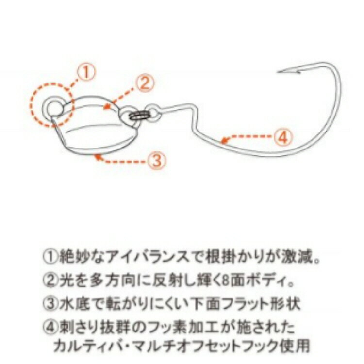 テキサスリグで幾度となくロストしてきたポイントで、ほとんど根がかりしませんでした。 誘い方の違いはあると思いますが、魚もキャッチできました。 フックもカルティバのマルチオフセットがついていますので、お好みのサイズに変更しても再利用できてお得感あります。