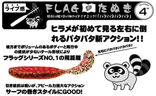 先ほどご紹介した「フラッグシャッド」の派生製品、「フラッググラブ」とは異なるコンセプトを持つ、グラブテールワームです。幅を大きく、長さを抑えたテールは、回転するような動きではなく左右にバタバタと倒れるような動きを演出。オリジナリティのある動きで、スレたフラットフィッシュを反応させるコンセプトを持っています。抵抗が少なく巻きが軽い、飛距離が出しやすいといった特性も持っているので、よく飛ぶワームをお探しの方は要チェックです!