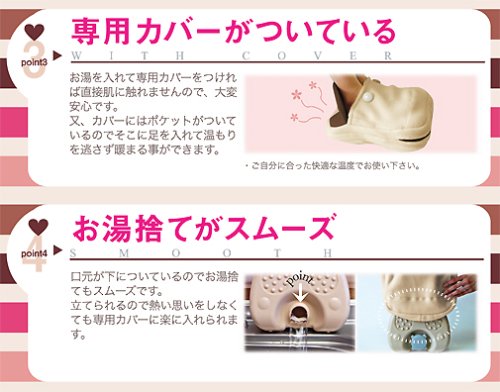また、カバーにはポケットが搭載されており、そこに足を入れることが可能。足を全体的に温めることができます。口元が下についているため、お湯が捨てやすく成っているのもポイントです。