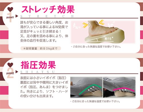 サイド部分についている部分から沸騰したお湯を入れるだけで、冷えやすい足元を暖められます。大きめサイズに作られているため、履きやすいのもメリットの1つです。