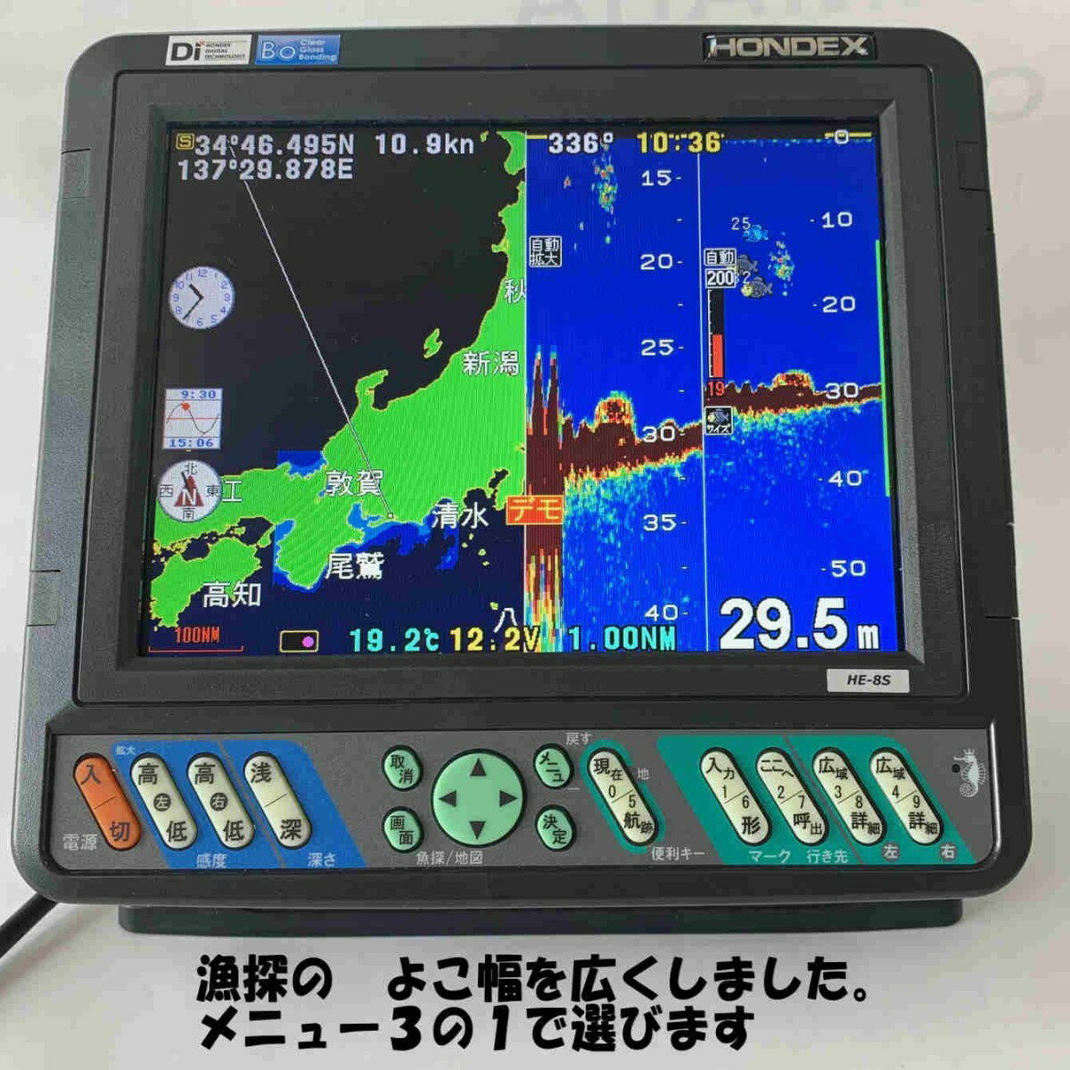 ただし周波数可変式なので、隣の魚群探知機との信号の混線は避けられます。16°を選べば精度は安定しますが広範囲は探れません。一長一短ですね。海でのゴムボート釣りなどでは、GPS機能が重宝しそうです。