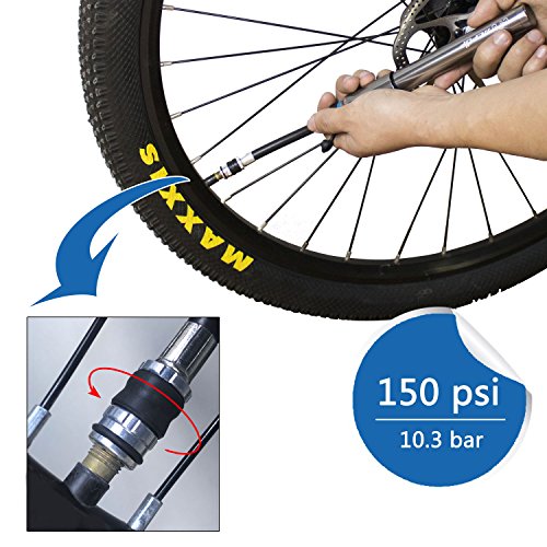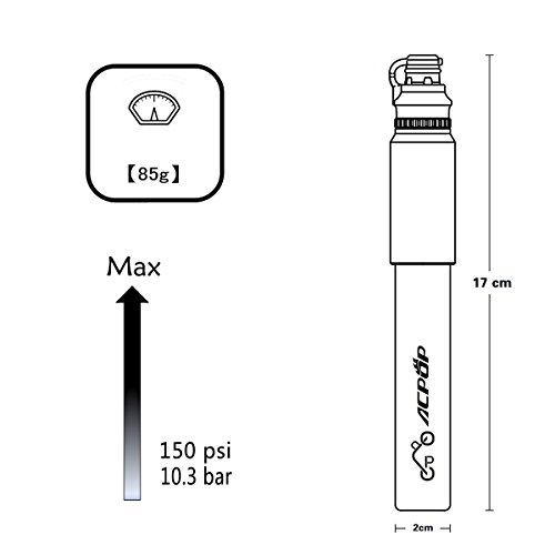 ACPOP|空気入れ携帯用ポンプ 米式/仏式バルブ対応 10.3bar/150psi